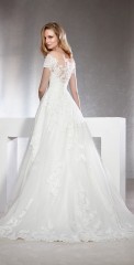 Ladybird isrt aus dem Hause Pronovias – Barcelona. Diese Kollektion zeichnet sich durch daufregende Designs, von enganliegend bis weit, mit außergewöhnlichen Rückenparien mit spanischer Spitze im Tatoolook aus.